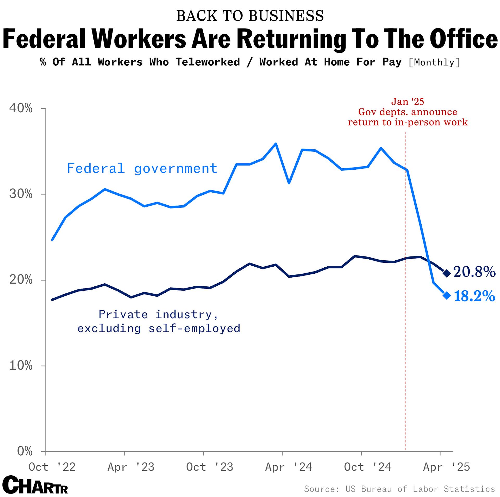 It looks like the mass of federal employees pretending to work from home have now been forced back to pretending to work from the office. I’m so relieved.