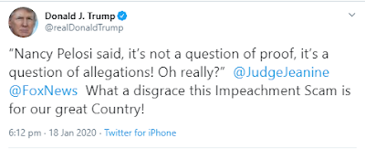 Let's hope the Senate is a lot more savvy than House Democrats and the Speaker when it comes to judging whether they (the House) have proved that their (entirely partisan) Articles of Impeachment against the President are de facto Constitutional "High Crimes and Misdemeanors," that would actually warrant a "guilty" verdict to be rendered by the Senate!