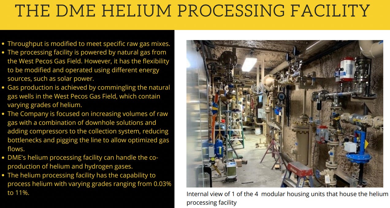 Low-cost, reliable natural gas, and He. Helium processing facilities at West Pecos were recently brought online — over several months — due to the equipment issues mentioned earlier.