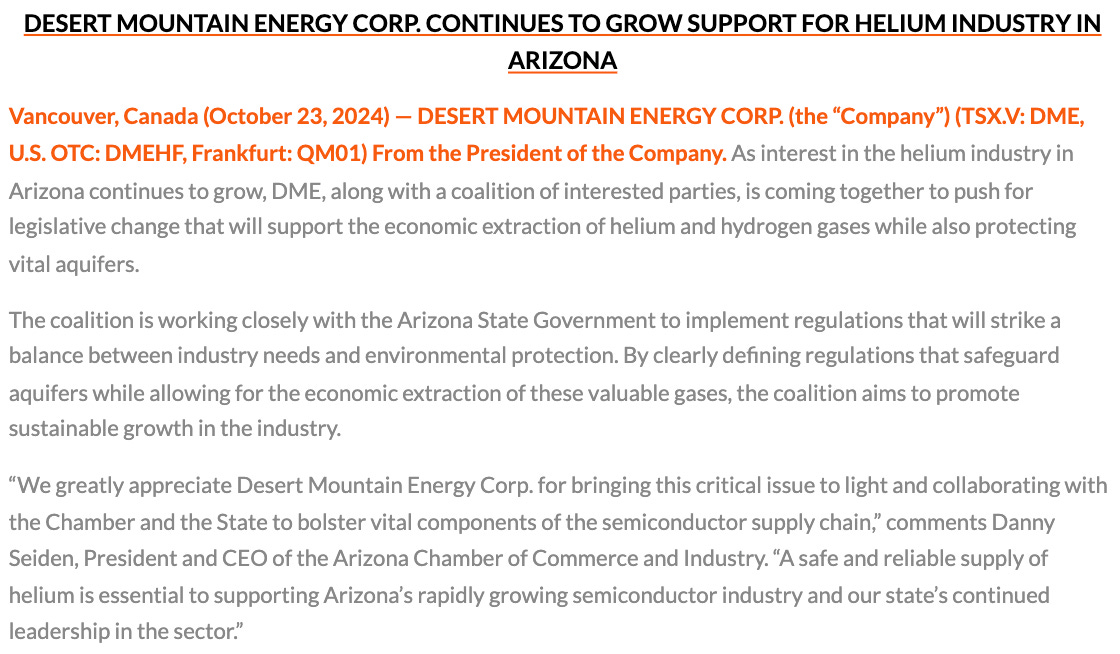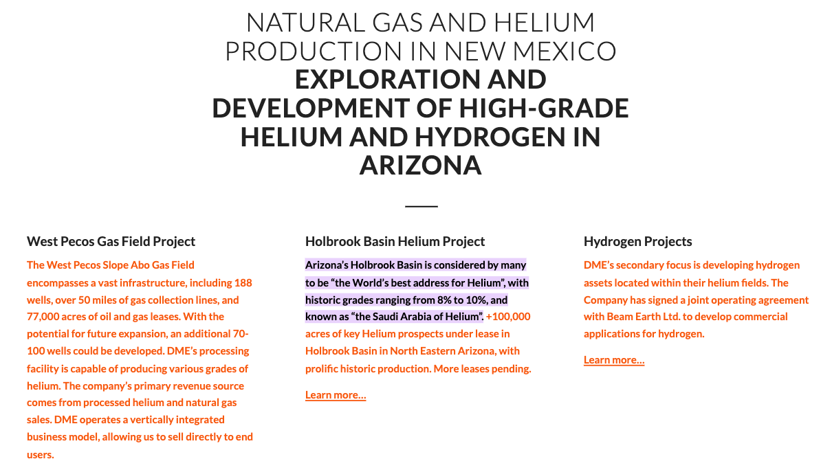 I mentioned hard, tangible assets in NM, to reiterate, there are 100,000+ acres of mineral leases, four He fields & eight He wells in the Holbrook Basin in NE Arizona. Desert gets virtually no credit for its hard assets in AZ, but they could be a company-maker next year.