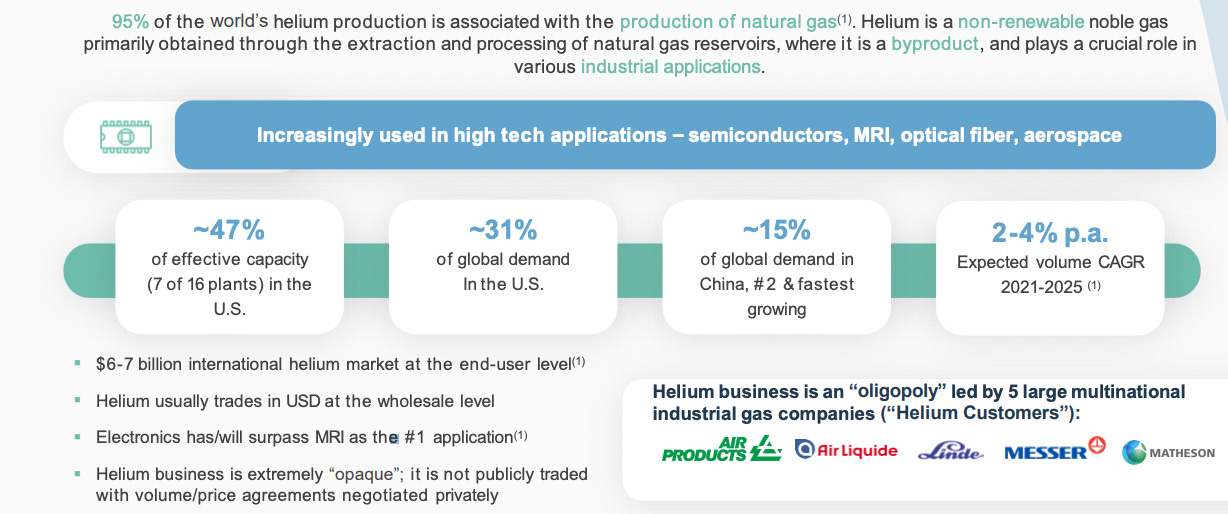 Helium is needed to manufacture semiconductors & fiber optics, for rockets & space expl./development, quantum computing, and MRI machines. Importantly, commercial He sales started this quarter.