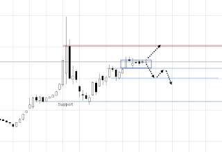 Since five days the market trading in a balance behavior and rejecting the bracket high. In the next days one of the potential scenarios could be a test of the lower balance area and the next support level. A break above the balance area to test the next resistance level is porbable as well.