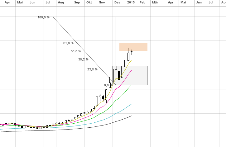 In the meanwhile let's take a technical look at the Russian Ruble again. With looking directly at the weekly bars chart, we can see that the market broke the potential balance area to the upside and one time framing higher since 3 weeks. The current week is a rotational inside week. We can also identify a potential resistance area between the 50% and 61.8% fibanocci levels. Currently the market rejecting the 50% level and balancing around below that area. With the installed EMAs we can cleary see that the bullish short-term as well as long-term trend is intact.