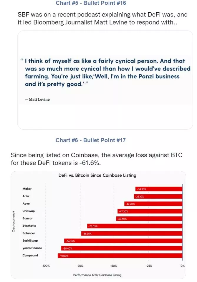 - Next was the DeFi craze. Coinbase was quick to list & market these tokens despite the heightened operational, security, and regulatory risks that came with them. SBF was on a recent podcast explaining what DeFi was, and it led Bloomberg Journalist Matt Levine to respond with. [Mish Comment: Chart 5 Below]